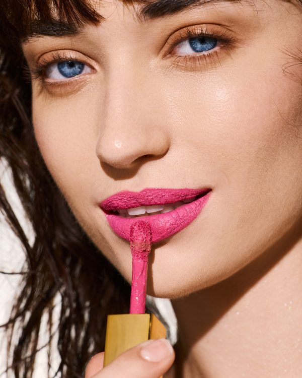 Τρίψε απαλά τα χείλη σου μεταξύ τους – και δες το glitter να αναδύεται σταδιακά, χαρίζοντας ροζ λάμψη με παιχνιδιάρικο twist.